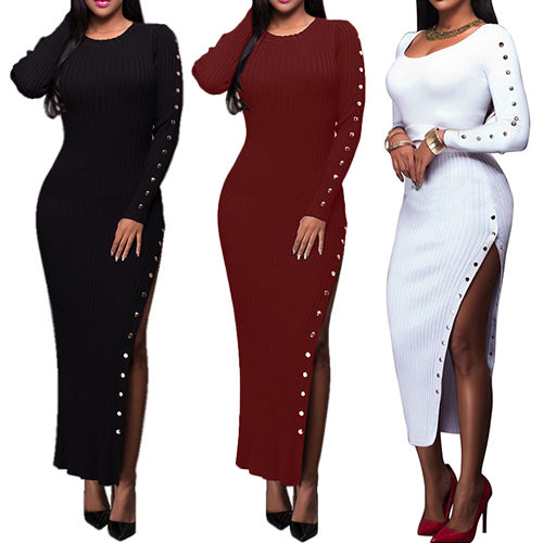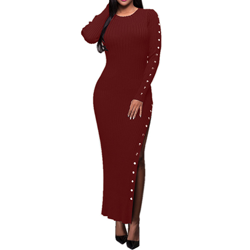 Portray a sexy and feminine image with this dress. Solid color style,styled with long sleeve,round neck and