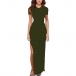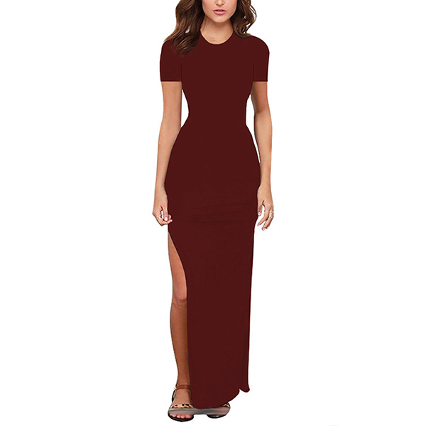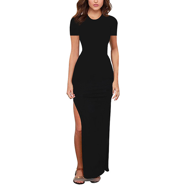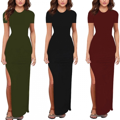 Sexy Slit Hem Short Sleeve Round Neck Slim Fit Dress