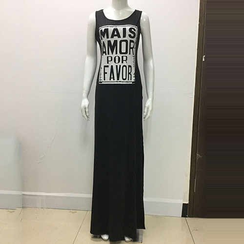 It is a wise investment to add this sleeveless maxi dress to your wardrobe ensemble. Letters printed style,