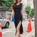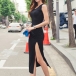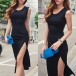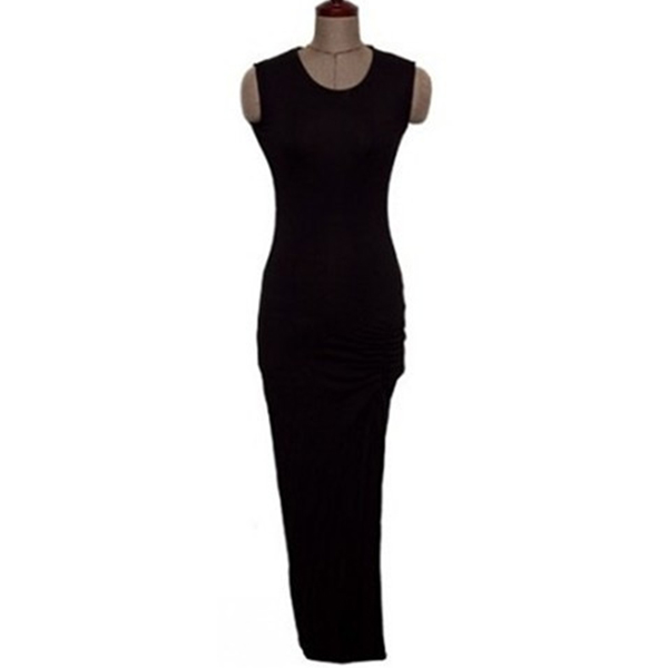 Sexy Slit Hem Sleeveless Round Neck Slim Fit Dress