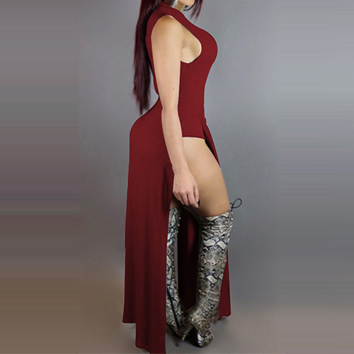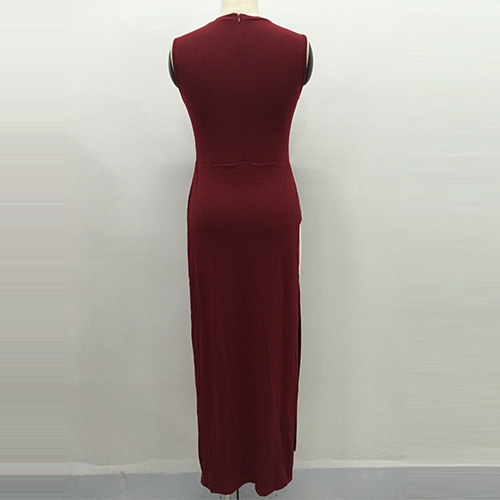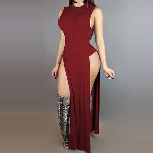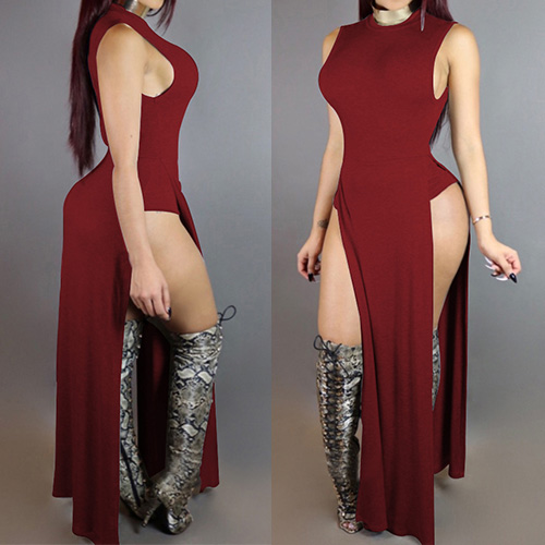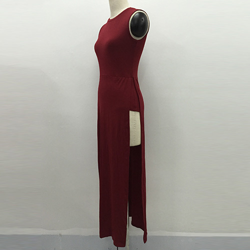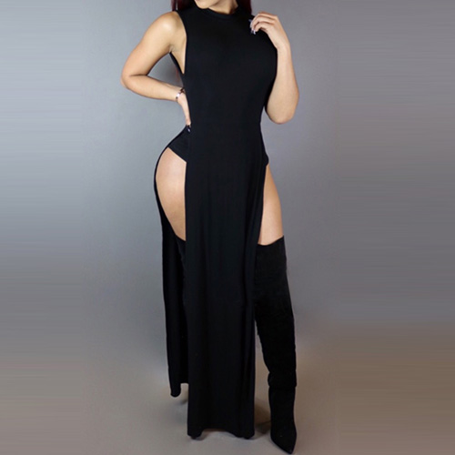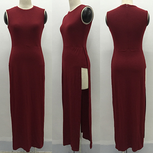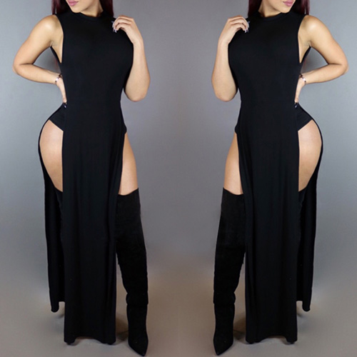 styled with sleeveless,round neck and slit hem,chic yet sexy. Match with your sexy heels and elegant