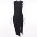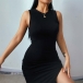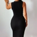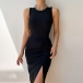 Sexy Slit Hem Sleeveless Round Neck Solid Color Slim Fit Tank Dress