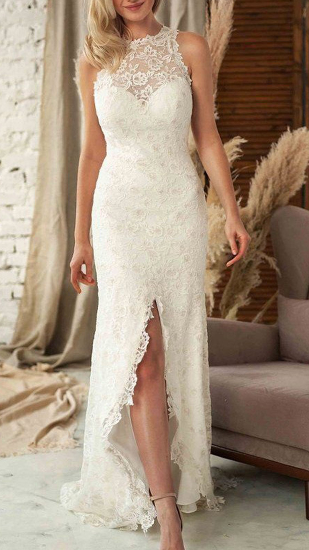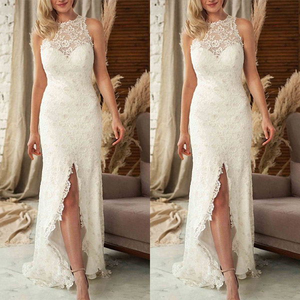 Sexy Slit Hem Sleeveless Slim Fit Lace Dress