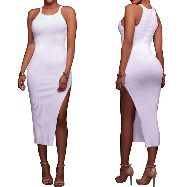 Don't be shy,show off your seductive curve and sexy style through this knit dress. Sling style,designed with a slit hem and