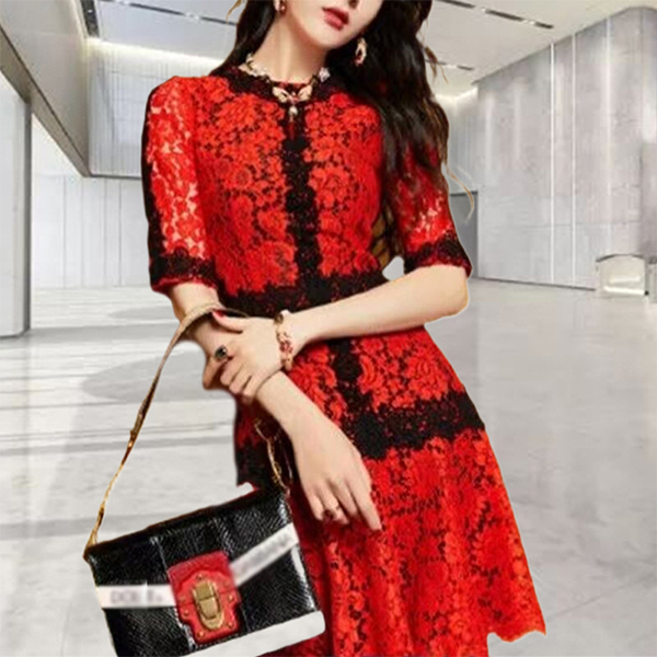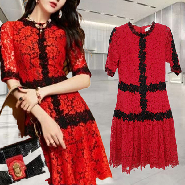Look exceptionally elegant and stunning when you slip into this lace dress. Comes with an eye-catching and delightful red tone,finished with square collar,slit hem and a fit silhouette,this dress can exude your flirty vibe while it display your slender figure. So why not save this dress for your fancy events?