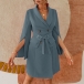 Sexy Slit Long Sleeve Notched Lapel Solid Color Slim Fit Dress