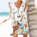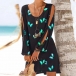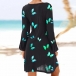 Sexy Slit Long Sleeve Round Neck Butterfly Printed Dress