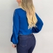 Sexy Slit Long Sleeve Round Neck Solid Color Lace-up Hem Top