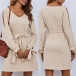Sexy Slit Long Sleeve V-neck Solid Color Dress