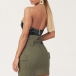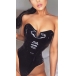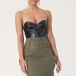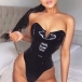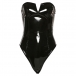 Sexy Slit V-neck Strapless Artificial Leather PU Bodysuit