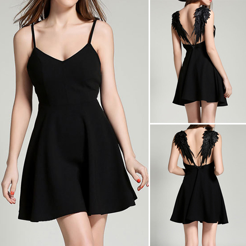 Solid color style, its back with lace embroidery wings design makes you look like a beautiful angel.