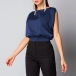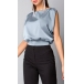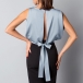 A satin top featuring a round neck, sleeveless and self-tie straps at the back.