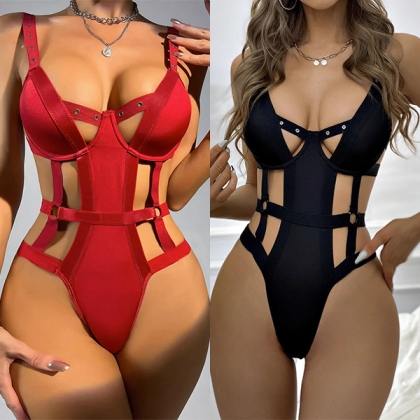 Sexy Solid Color Backless Cutout Lingerie Bodysuit