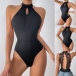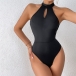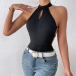 Sexy Solid Color Backless Lace Spliced Bodysuit