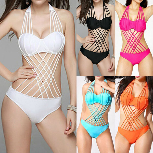 You are bound to be the focus on the beach once you wear this halter swimsuit. One-piece style,with backless and multi-strap