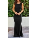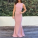 Sexy Solid Color Backless Ruffled Sleeveless Round Neck Party Dress