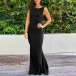 Sexy party dress featuring a sleeveless, backless design, ruffle details, and the fishtail hemline. Multi-color is available.