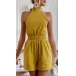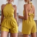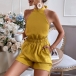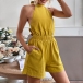 Sexy Solid Color Backless Side Pockets Halter Romper