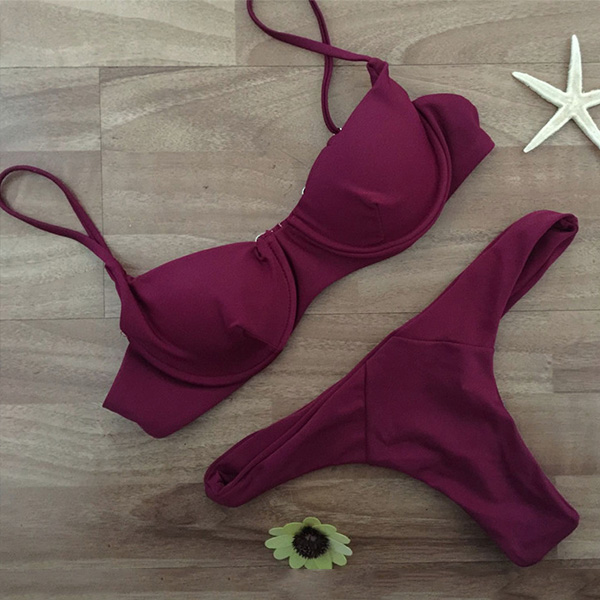 Wanna escape from the hot summer days? Then we suggest you heading to the seaside with this bikini set. Solid color style,