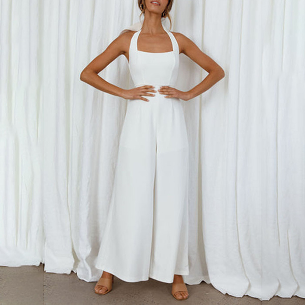 Sexy Solid Color Backless Wide-leg Halter Jumpsuit