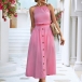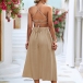 Sexy Solid Color Buttoned Cross-criss Backless High Waist Midi Dress