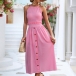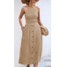 This dress is perfect for those who want to achieve a sexy yet stylish look. It features a solid color design, button details, a cross-criss backless design, and a high waistline, creating a chic and effortless vibe.