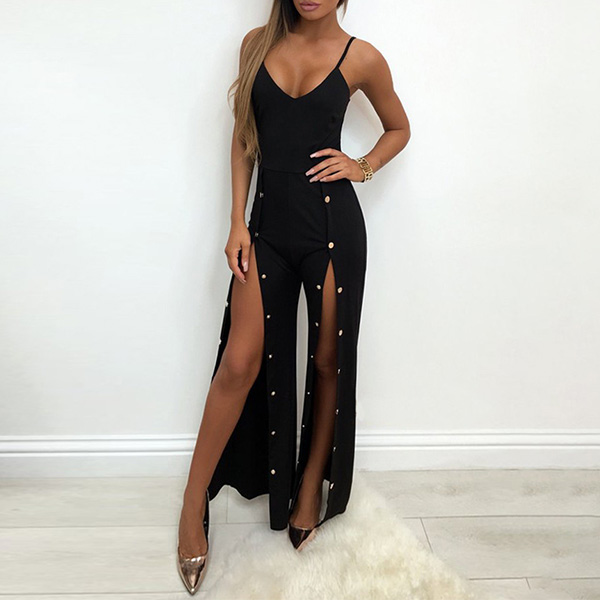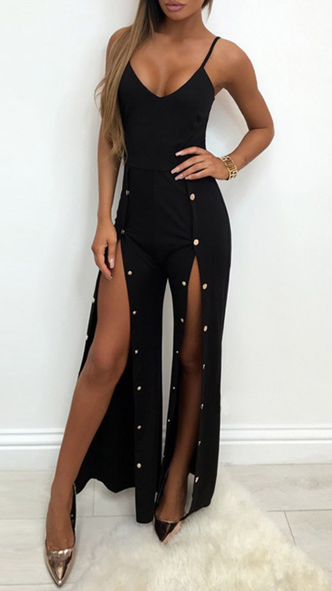 Looking for something sexy, stylish, and comfortable all at the same time? Look no further than this Cami Jumpsuit! Made from a soft and comfortable material, this jumpsuit is perfect for any woman who wants to feel sexy and confident. The solid color is perfect for any occasion, and the buttoned slit wide-leg design makes this jumpsuit even more stylish and unique. With its adjustable straps and figure-flattering silhouette, this jumpsuit is sure to become one of your favorite go-to pieces in your wardrobe.