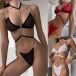 Sexy Solid Color Chain Three-piece Lingerie Set