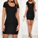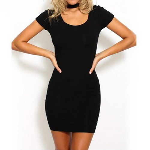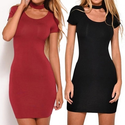 neckline, round neck and short sleeve design, solid color style and a slim-fitting silhouette, this dress