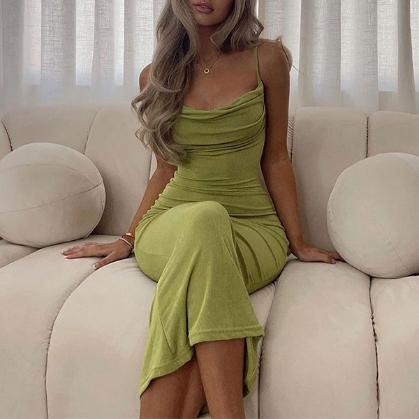 Sexy Solid Color Cowl Neck Bodycon Maxi Dress