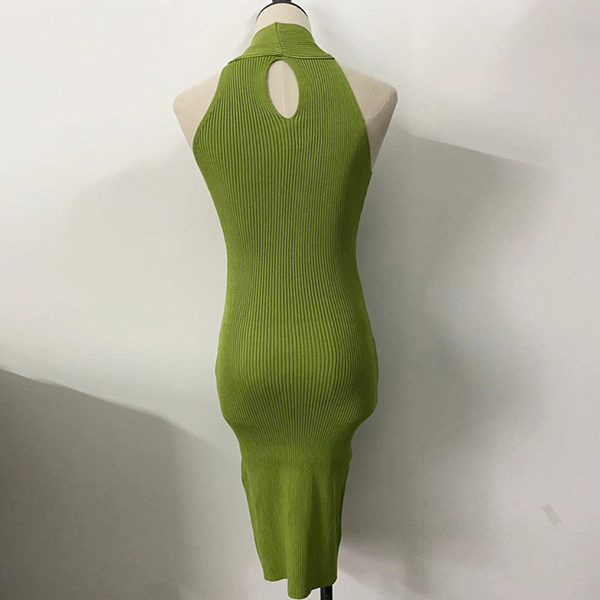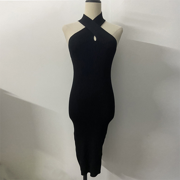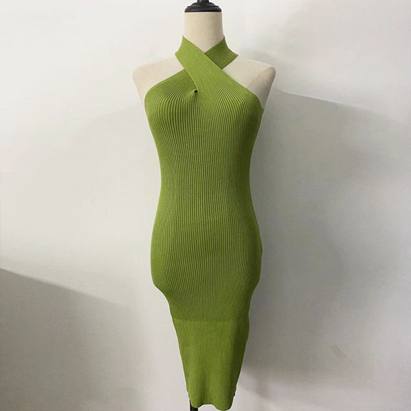 Sexy Solid Color Cross-criss Halter Neck Bodycon Dress