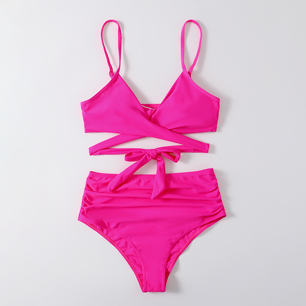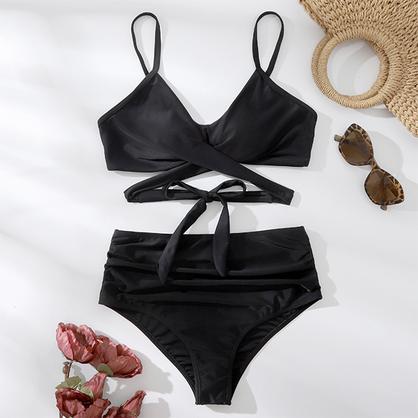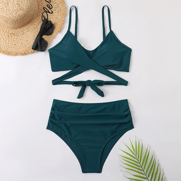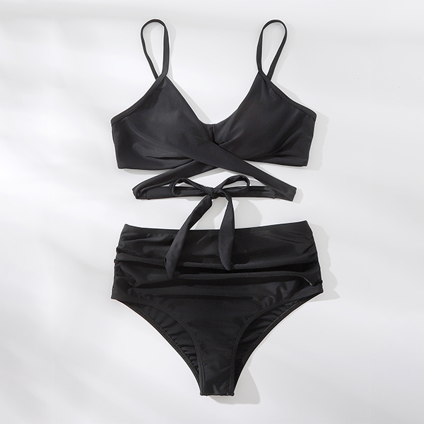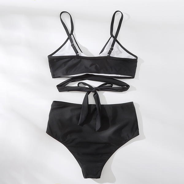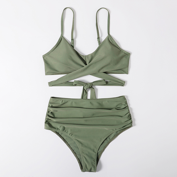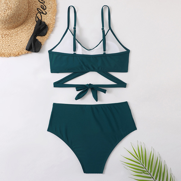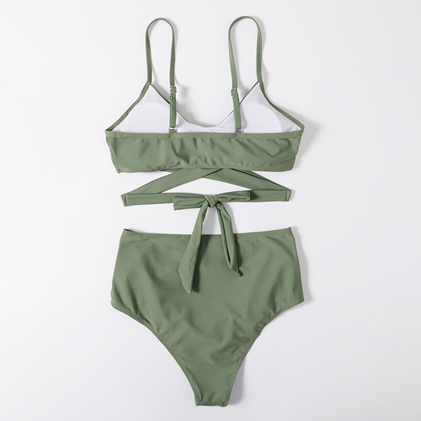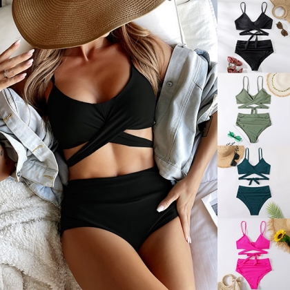 Sexy Solid Color Cross-criss High Waist Bikini Set