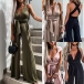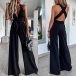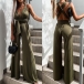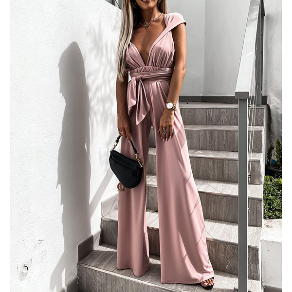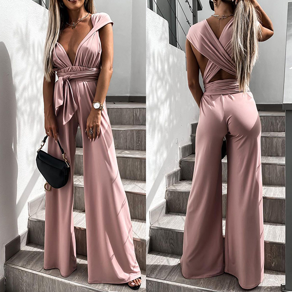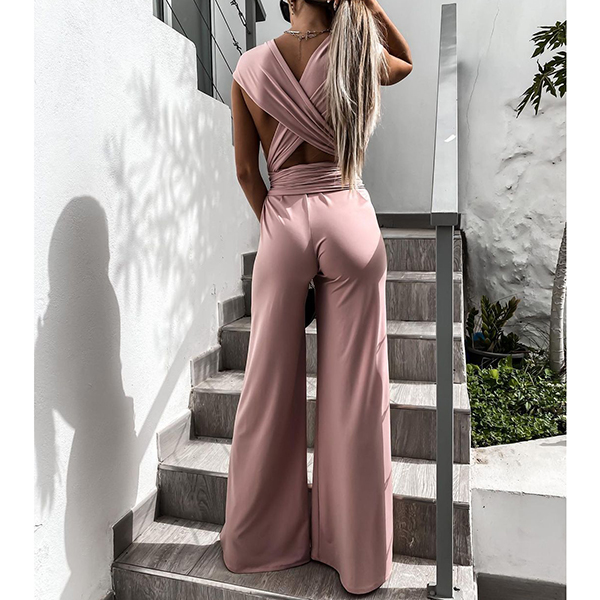 Sexy Solid Color Cross-criss V-neck Wide-leg Jumpsuit
