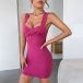 Sexy Solid Color Cross-cross Ruched Backless Bodycon Slip Dress