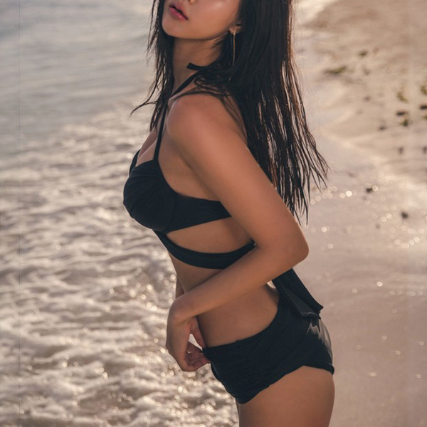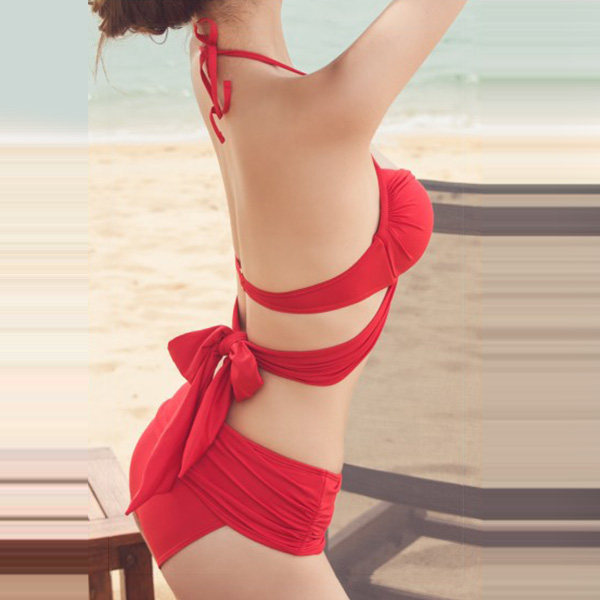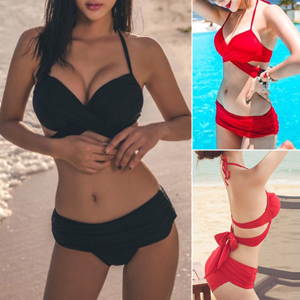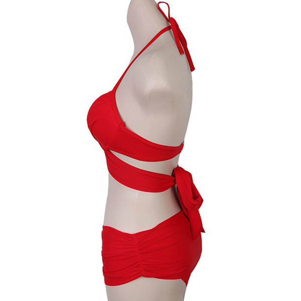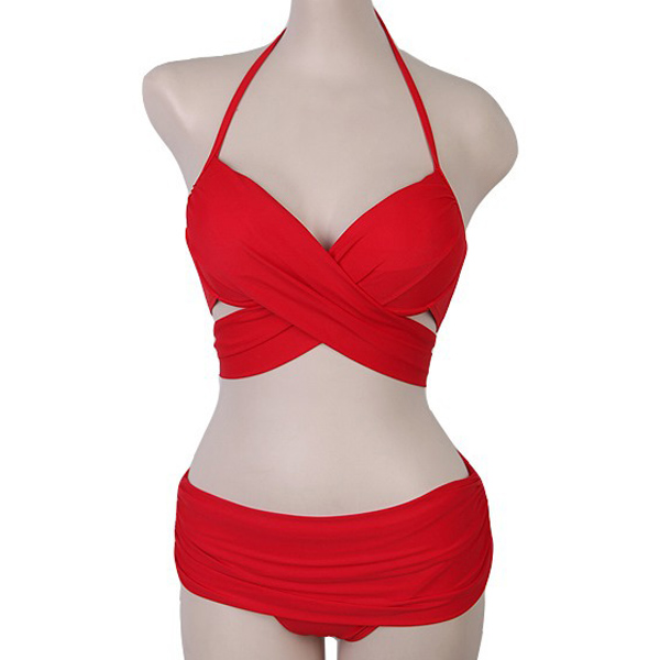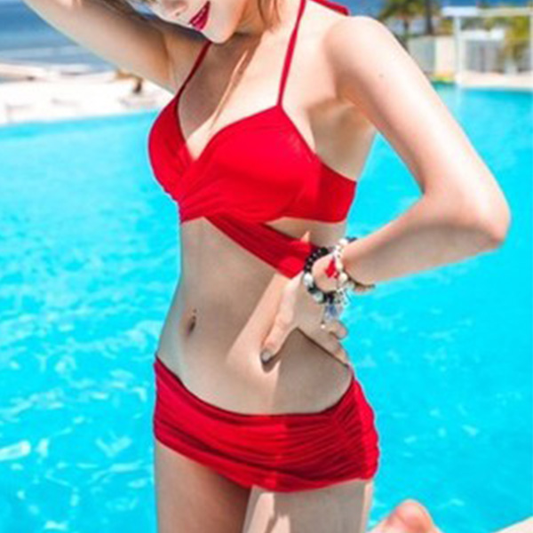 Sexy Solid Color Cross-cross Self-tie Bikini Set