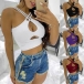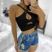 Sexy Solid Color Crossover Hollow Out Crop Top