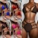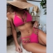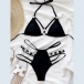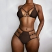 Sexy Solid Color Cut Out Chain Halter Neck Bikini Set