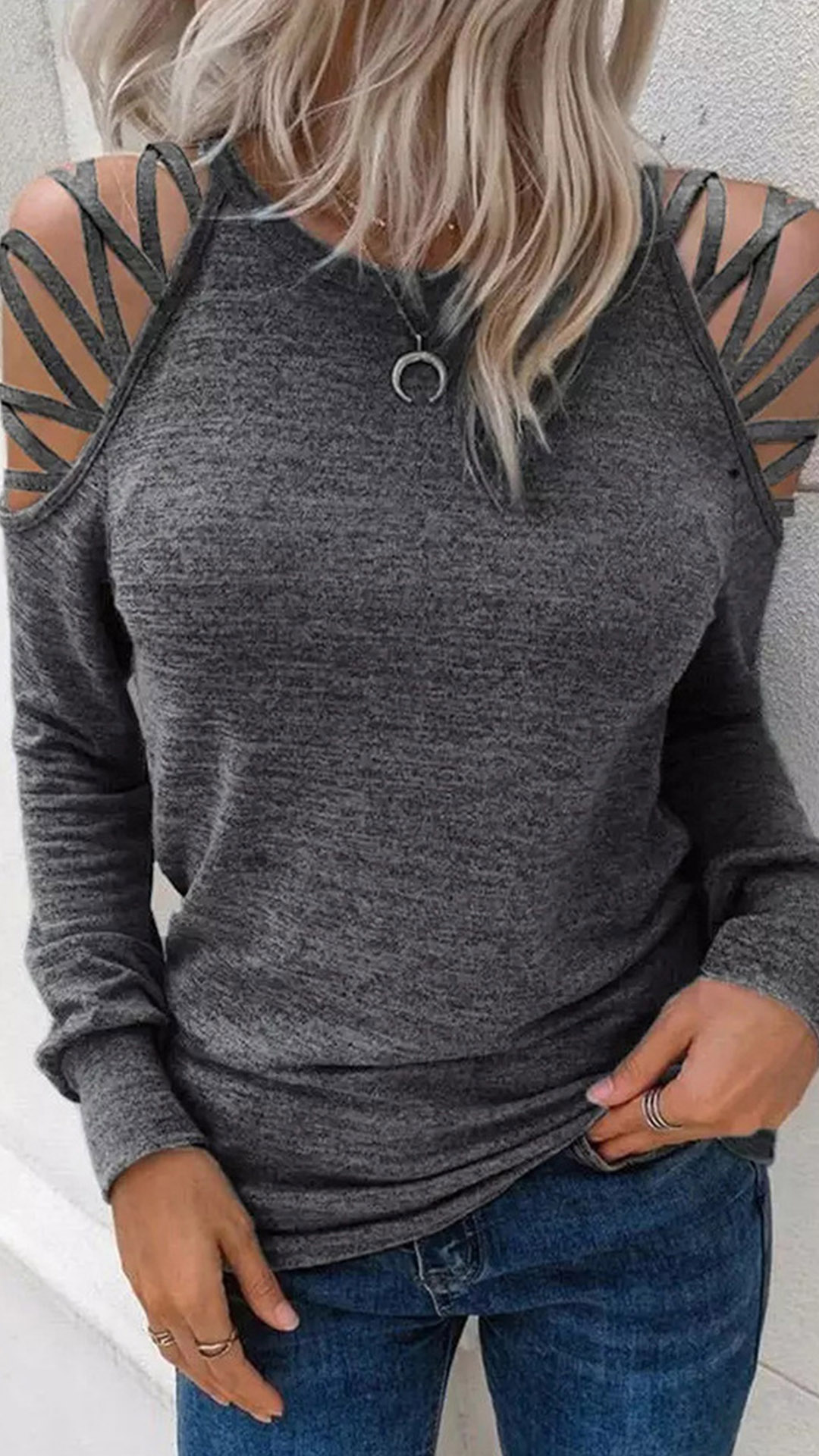 Sexy Solid Color Cut Out Criss-cross Long Sleeve Round Neck Shirt