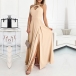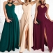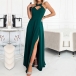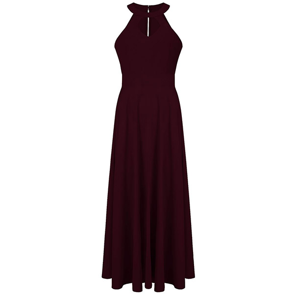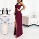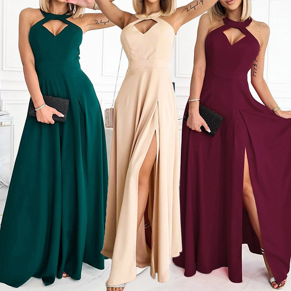 Flaunt your curves in this sexy maxi dress! The solid color is perfect for any occasion, while the cutout leg slit and halter neck add a flirtatious touch.