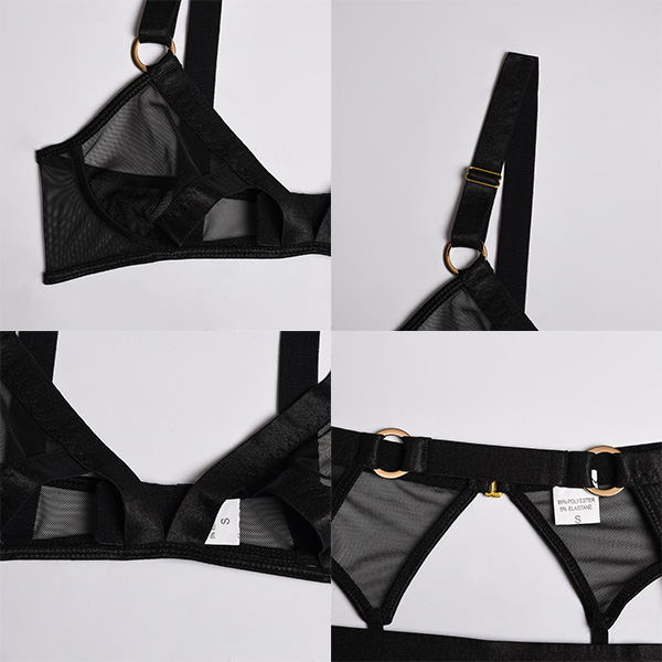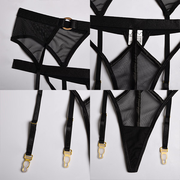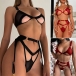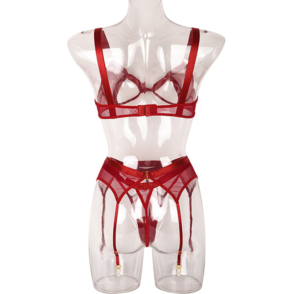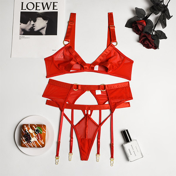 Sexy Solid Color Cutout Lingerie Three-piece Set