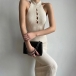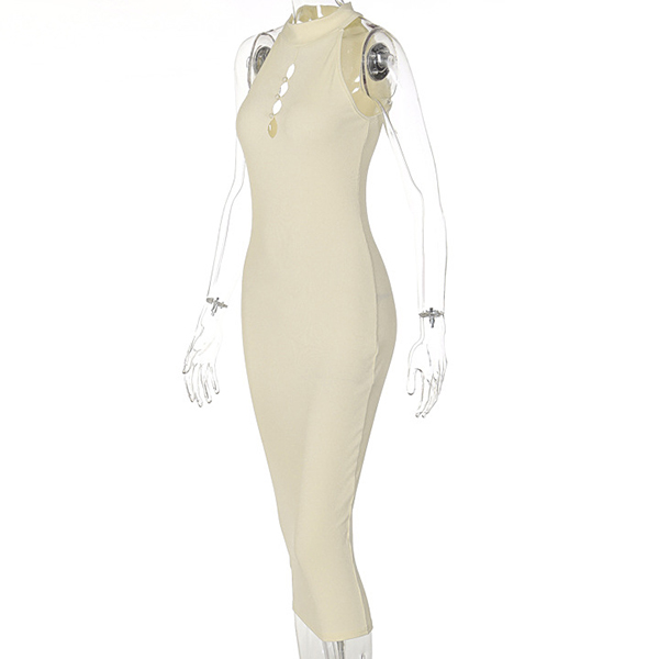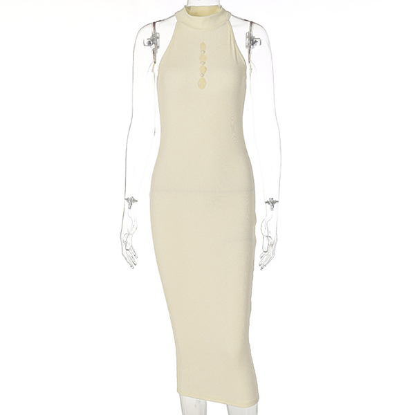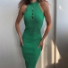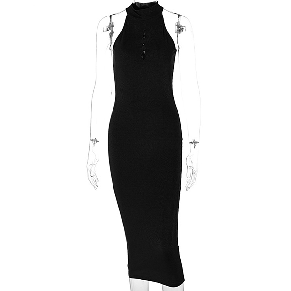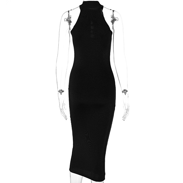 Sexy Solid Color Cutout Sleeveless High Halterneck Bodycon Dress