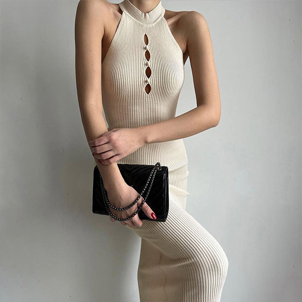 How about this dress? The figure-hugging silhouette will show off your curves, while the front cutouts and high halterneck neckline add a touch of sultriness. Hope you like it.