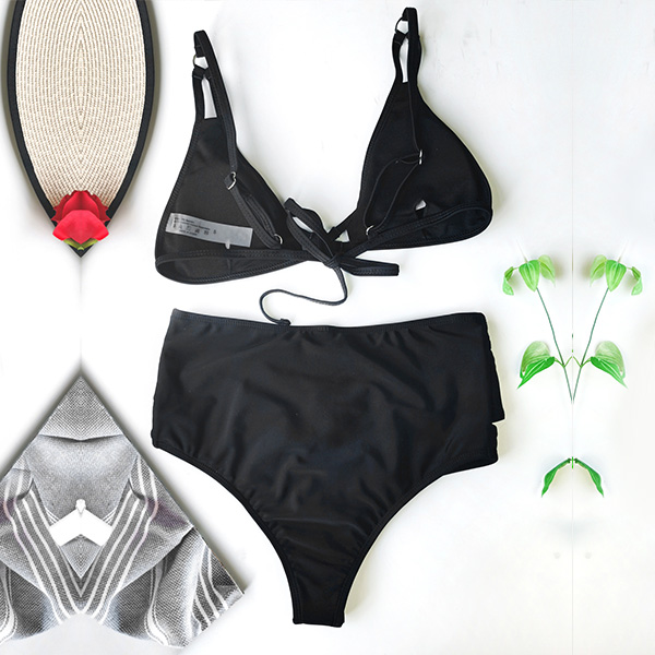 Sexy Solid Color Cutout Two-piece Bikini Set