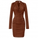 Sexy Solid Color Cutout V-neck Ruched Bodycon Dress