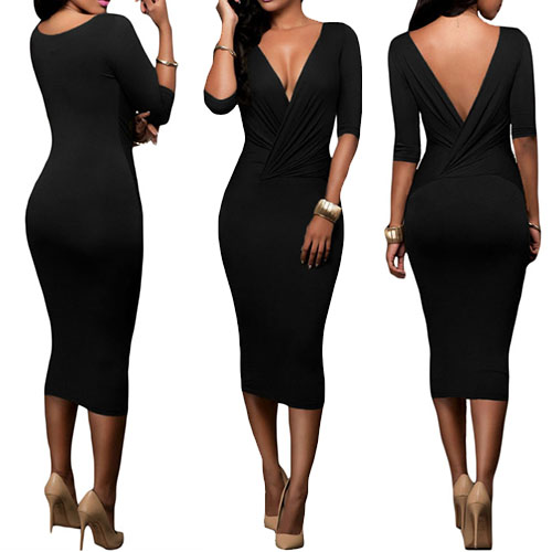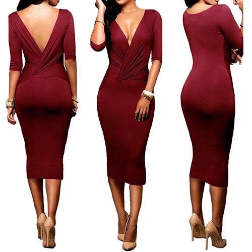 One dress provides you two different sexy style. You can wear it as a round neck or deep v-neckline design.