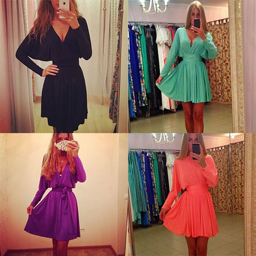 Do you have like this dress in your wardrobe ? Come and have a look. It features solid color,