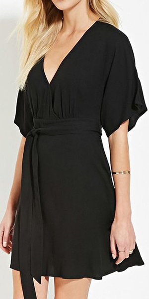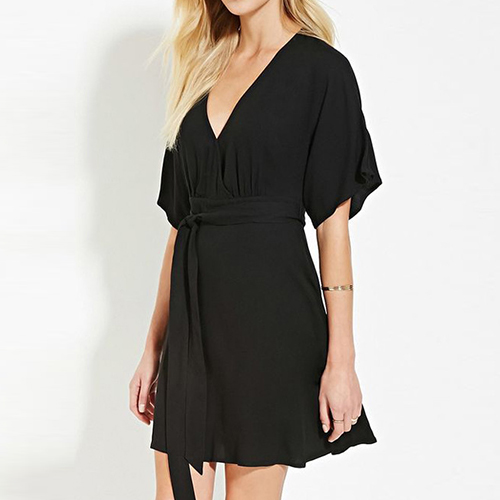 Boasting a mysterious and sexy black color, with deep v-neck, short sleeve and gathered waist
