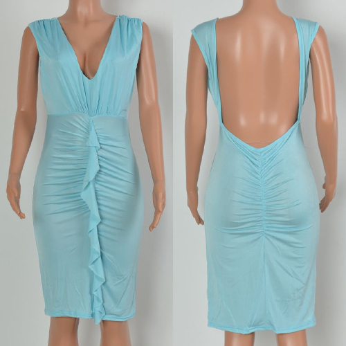 Achieve your sexy wardrobe ensemble with this dress! Deep v-neck, sleeveless and backless designs
