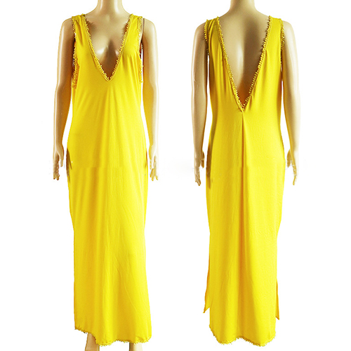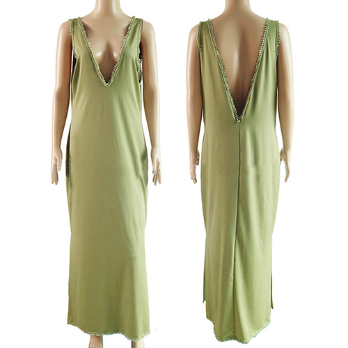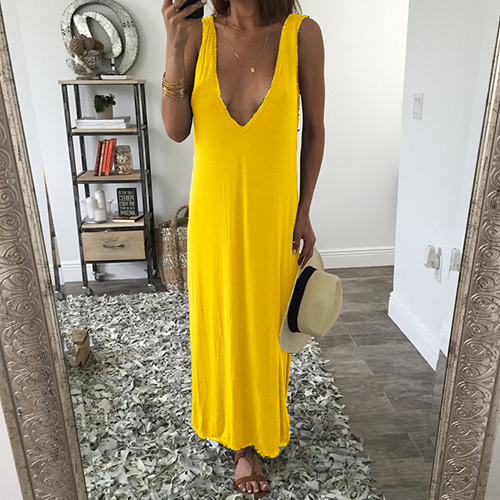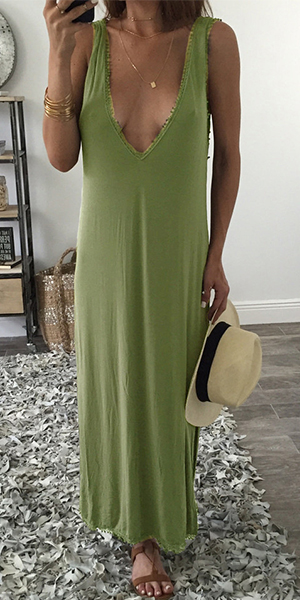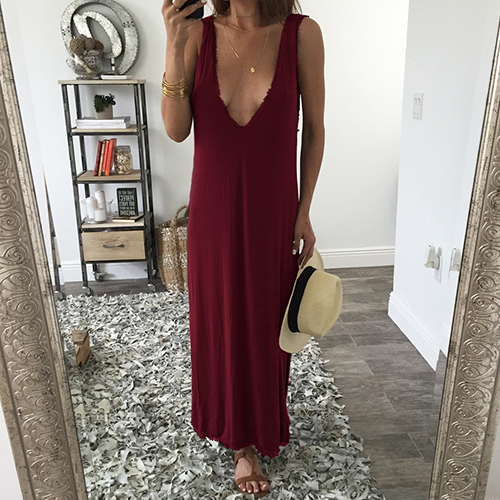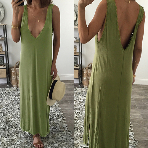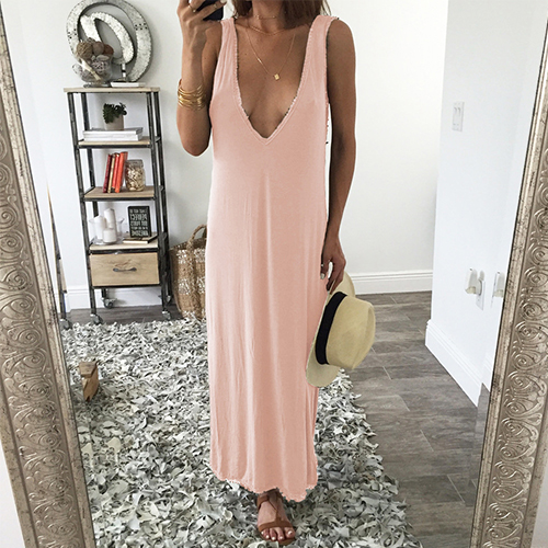 Create a sexy and charming image by slipping into this dress. It boasts bold, deep v-neck, sleeveless