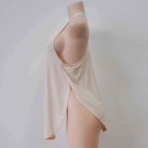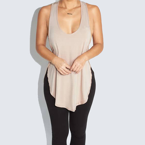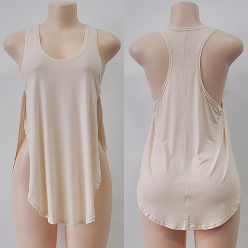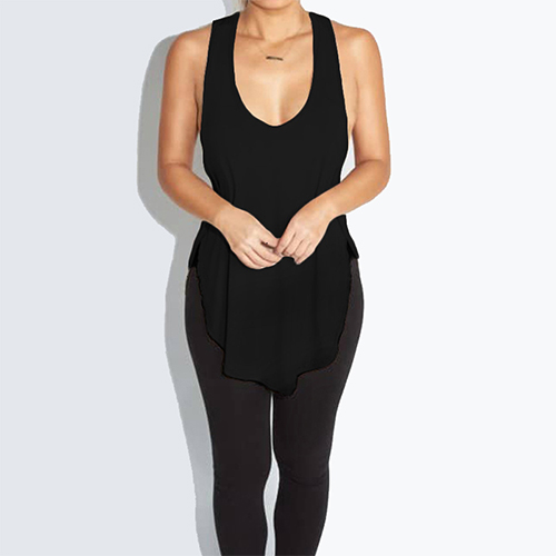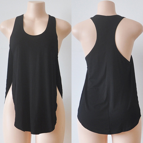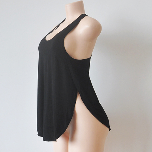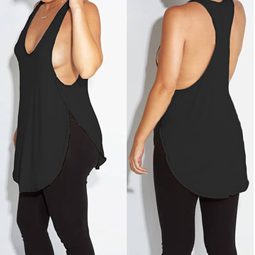 Solid color style, designed with deep v-neck, sleeveless and side slit, this T-shirt accentuates your